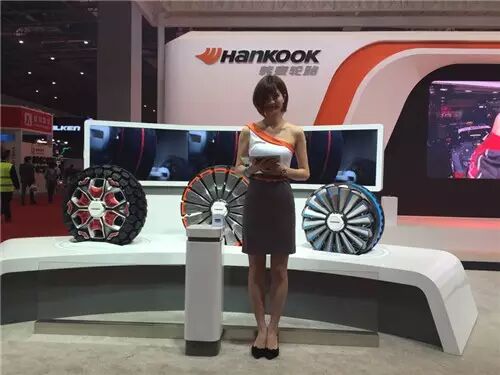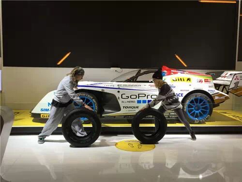 很难想象两个外国人在展台上滚轮胎是什么样子~轮胎厂商也是拼了!