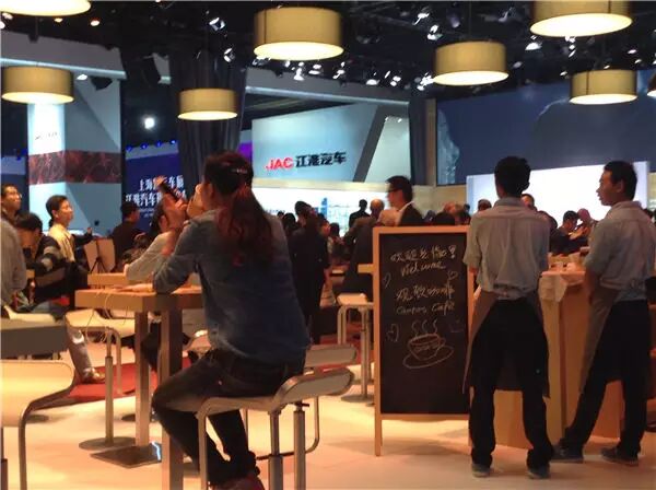 观致展台,据说是咖啡馆来着~因为可以排队领咖啡点心,所以永远人声鼎沸、热闹非常~只是,这是来看车的吗?