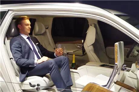 坐在全新沃尔沃XC90里的帅气小哥,手握香槟,惬意无比啊~