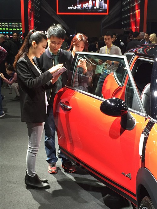 这次上海车展不仅仅限制了车模,包括音响、宣传手段等都有所限制,像下图这样的二维码宣传方式也不像去年那样泛滥了。下图的妹纸看到小主在拍她们,马上积极的说:扫一扫吧~我问:这是哪家公司的?扫出来是什么?妹纸想想:我不知道。这兼职做的。。。