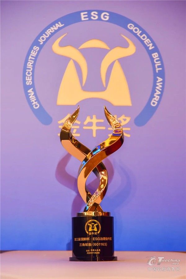 2025年11月26日,以“治善致远 绿动未来”为主题的2025年金牛企业可持续发展论坛暨第三届国新杯·ESG金牛奖颁奖典礼在江苏苏州举行。本次大会由中国证券报、中国国新控股有限责任公司主办。三角轮胎股份有限公司荣获“第三届国新杯·ESG治理金牛奖”。