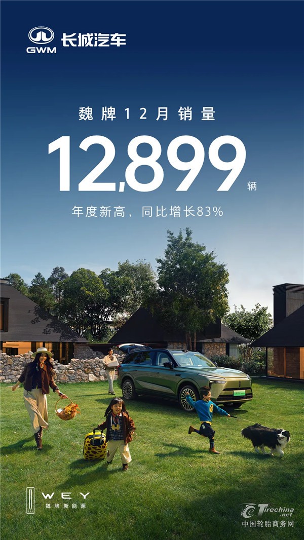 魏牌2025年12月销量12,899辆,年内新高,同比增长83%。