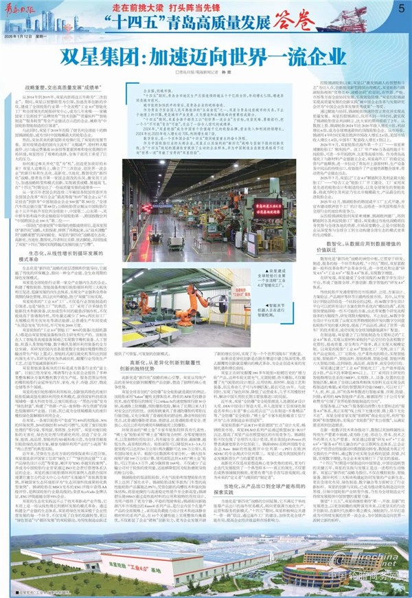 “十四五”时期是中国制造向中国智造、中国创造转型的关键五年,双星的实践与发展正是这一进程的生动缩影。双星以“新四化”战略为指引,不仅在橡胶轮胎、智能装备、循环利用三大板块构建起协同发展的产业新生态,更在全球化布局、绿色制造、数字融合等方面树立了行业新标杆。双星的创新与实践,已成为推动青岛制造迈向世界级、引领中国轮胎产业转型升级,乃至为全球制造业可持续发展提供中国智慧的重要力量。
