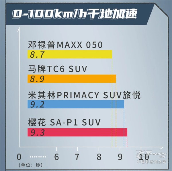 这一表现显示,其胎面配方与花纹设计在干地抓地力与动力传递效率方面具有较好的平衡能力,能够满足城市SUV日常起步、并线及加速超车的使用需求。