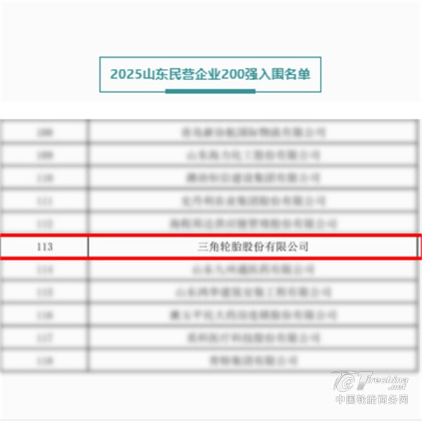 8月11日,山东省工商联对外发布2025山东民营企业百强系列榜单,三角轮胎凭借强劲的综合实力、创新能力和就业贡献,入围2025山东民营企业200强、2025山东民营企业创新100强、2025山东民营企业吸纳就业100强。