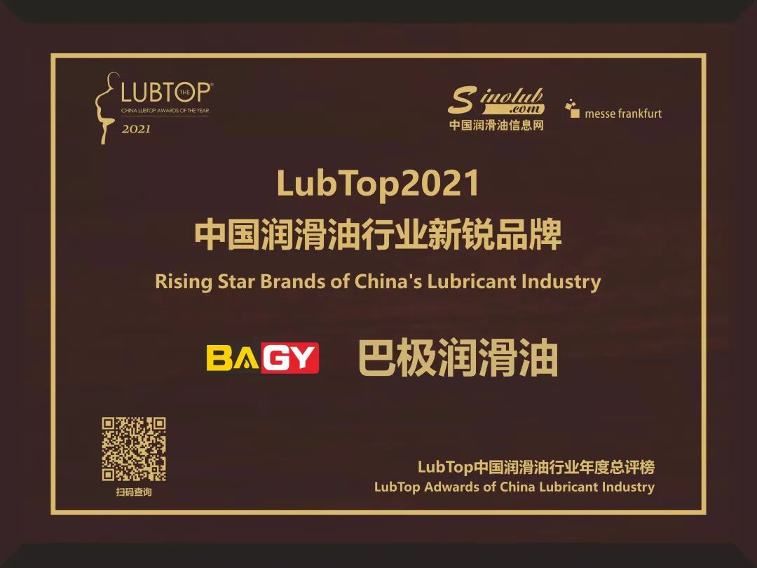 巴极润滑油荣获LubTop2021润滑油行业新锐品牌奖据组委会介绍,评选活动以技术创新、市场表现、用户满意度、行业影响力等四大维度为品牌核心评价体系。在企业申报资格海选,第三方权威机构质量检测结果(一票否决权)基···