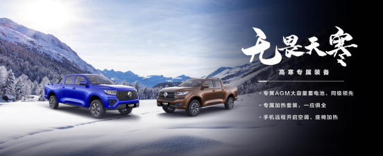 同时,乘用炮高寒版还搭载新一代智能网联系统,可以通过手机远程启动车辆,提前打开车载空调、座椅加热,让家人一上车,就可以享受舒适温暖的驾乘环境。
