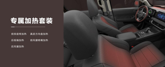 配备专属加热套装,包括前排座椅、真皮方向盘加热,让车内乘员身体触及的地方,处处温暖,确保座舱在寒冷天气,也能迅速营造“温暖如春”的驾乘感受。