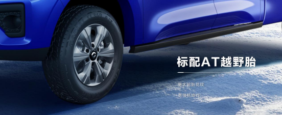 全系标配AT胎,拥有更大的轮胎花纹,带来更强悍的抓地力,再加上四驱系统的加持,有效提高车辆的操控性和稳定性,让我们面对大雪封路、冰冻路面、泥泞坑洼等复杂路况,更加自信、从容。