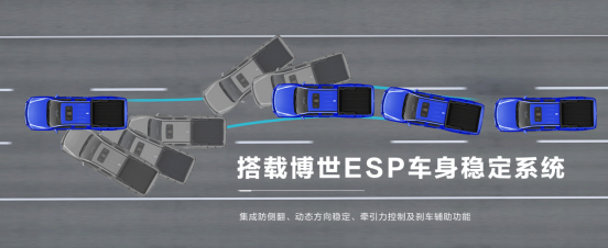 搭载博世全新一代ESP车身稳定系统,集成防侧翻、牵引力控制及刹车辅助功能,确保车辆始终保持最安全、最稳定的行驶状态;标配上坡辅助、陡坡缓降等功能,让用户应对冰雪路面,心里更有底,更从容,更安心。