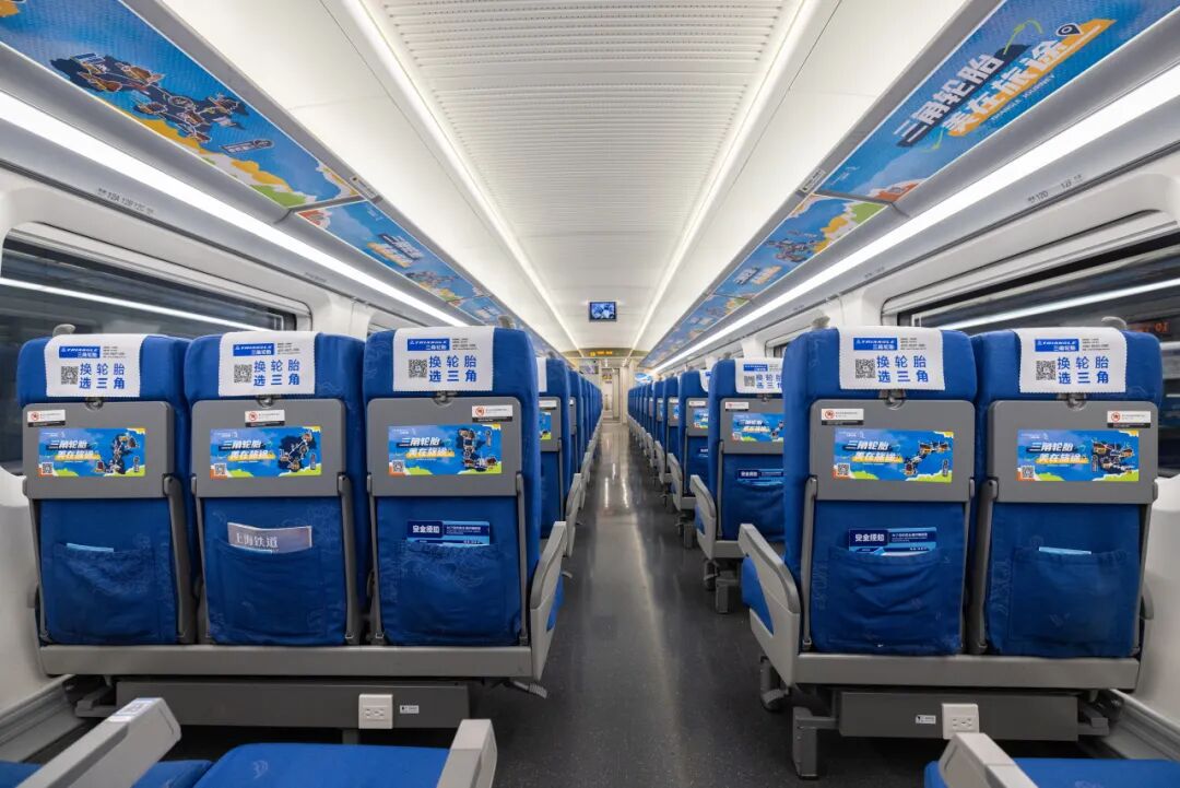 三角轮胎是首家冠名京沪线“复兴号”的轮胎企业,此次品牌专列更全面覆盖“复兴号”主力车型,以全方位、立体化形象亮相,打造沉浸式出行体验,让旅途成为品牌与山河的共鸣,让“三角轮胎”四字随高铁声光同行,深入人心。