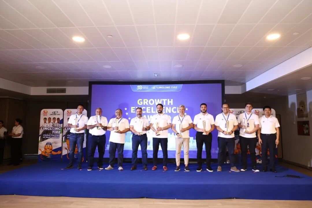 在颁奖典礼环节,玲珑向多年来并肩前行的经销商伙伴表达了崇高敬意与衷心感谢。他们是玲珑开拓国际市场的关键力量,是链接产品与用户的坚实桥梁。正是依托各位在区域市场的深耕细作与卓绝奋斗,玲珑的全球网络才得以不断延展,品牌旗帜遍插五洲。