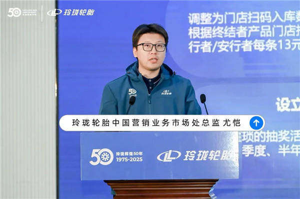随后,中国营销市场处总监尤恺先生对全新产品线进行了详细介绍,并前瞻性地阐述了未来产品规划与市场政策,充分展现了玲珑以创新产品力持续赋能渠道发展的决心与实力。依托终结者系列与新能源产品技术优势,为客户提供了丰富的产品解决方案。并呼吁共赴新百年,厂商一心,勇攀高峰。