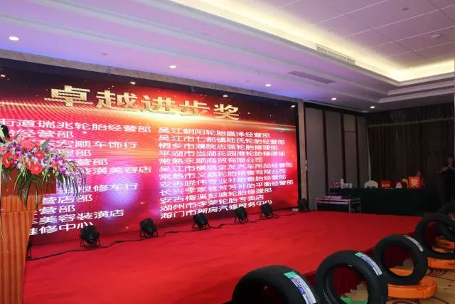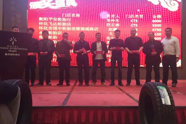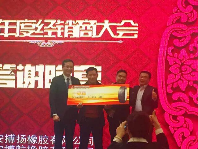 大会现场进行了颁奖典礼,其中奖励威狮轿车胎品牌专营奖4人、卓越经营奖3人 、规模贡献奖2人。送出了轮胎及油卡等丰厚奖品,晚宴抽奖环节也是亮点十足。