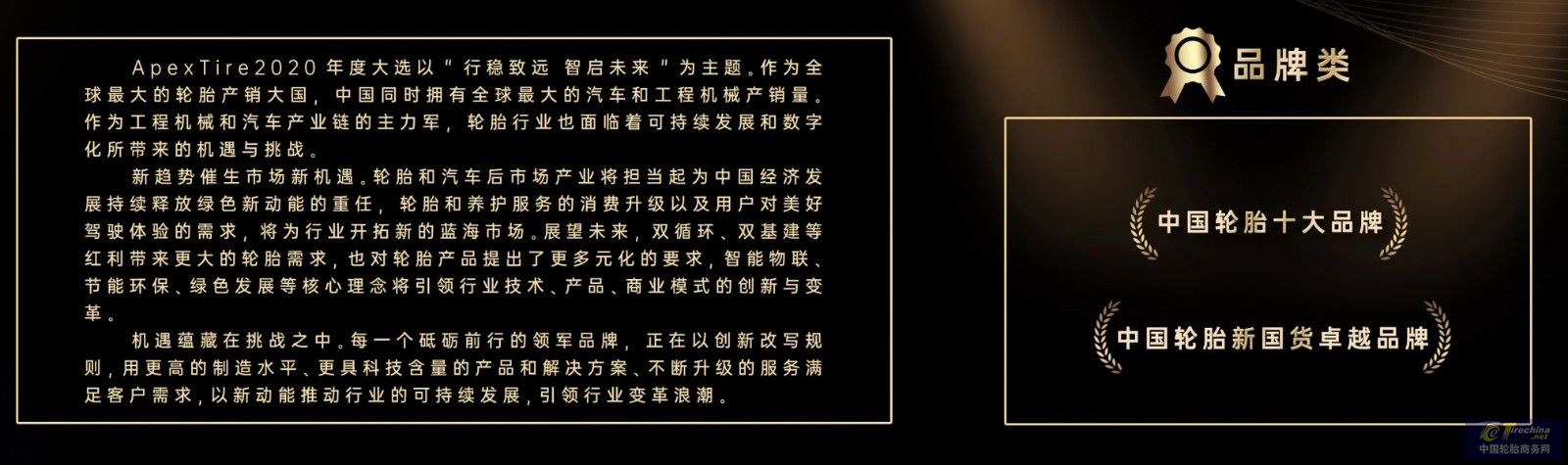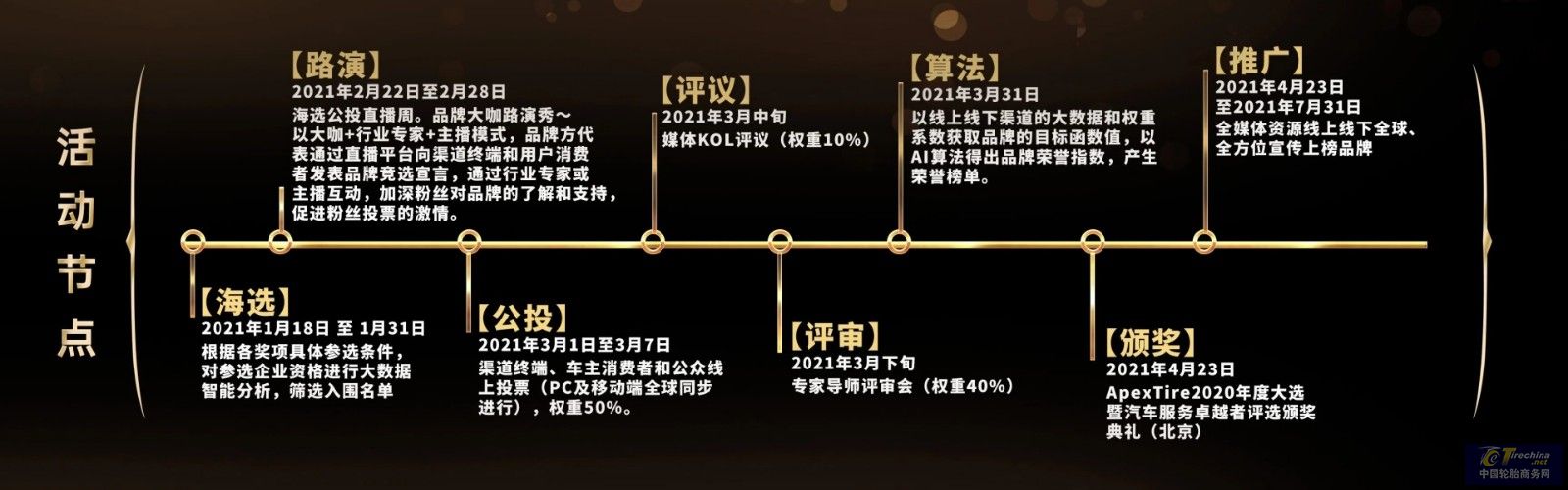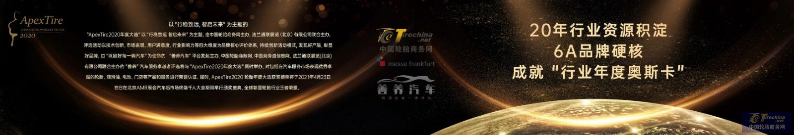 PS: “ApexTire2020年度大选”为独立第三方公益评选,秉承公平公正原则,评选过程中不接受任何参评轮胎品牌的赞助,敬请知照。