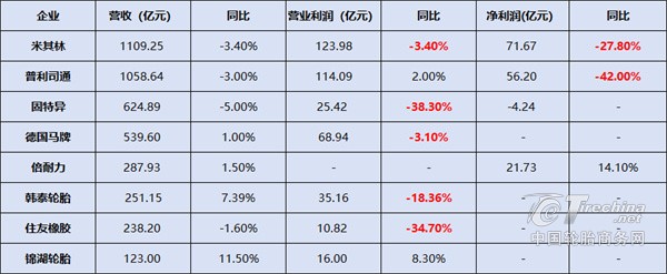 全球八大轮胎巨头发布半年报,半数利润下滑
