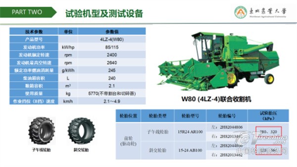历经两年严谨试验,农业子午线轮胎在效率、节能、土壤保护三大维度表现卓越,为农业机械化新质生产力发展提供关键技术支撑。由贵州轮胎委托东北农业大学执行的"联合收割机配置不同轮胎对比试验"(2022.8-2024.4),以4LZ-4(W80)联合收割机为测试载体,经三轮次设备研发与多场景试验验证,充分证实了农业子午线轮胎的全面性能优势。这项研究为农业机械化转型升级提供了科学依据和技术支撑。