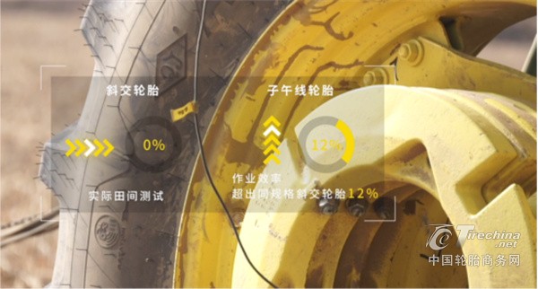 田间作业中,在相同胎压下,子午线轮胎收割机作业速度比斜交胎更快速,滑转率更低,有效降低了湿软田地陷车打滑风险。在道路和田间工况,配置胎压280kPa子午线轮胎的联合收割机牵引功率均显著提高,耗油率均显著降低。且在重载工况下仍能保持稳定油耗,综合燃油经济性突出。