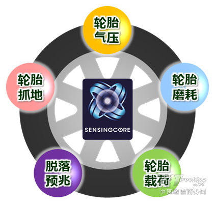 “核心传感”是一项通过解析从轮胎转动所获得的轮速数据以及车辆内部流转的CAN数据(车辆控制信息),来估算轮胎及车辆状态的独家软件技术。其特点在于无需使用额外传感器,即可检测轮胎气压、轮胎磨损状态、车辆负载、路面状况,甚至车轮脱落的前兆。