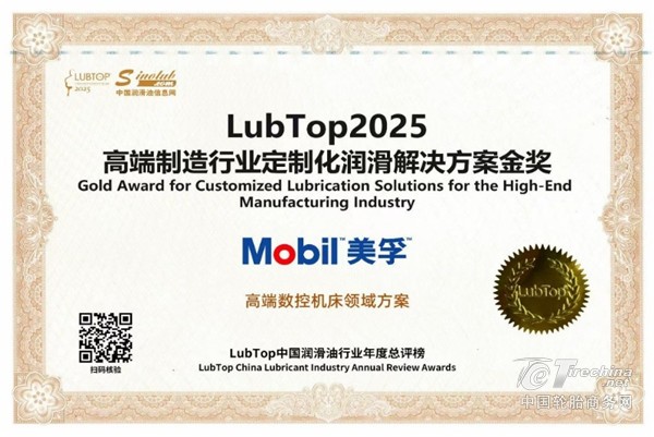 埃克森美孚中国荣膺LubTop2025 “高端制造行业定制化润滑解决方案金奖”