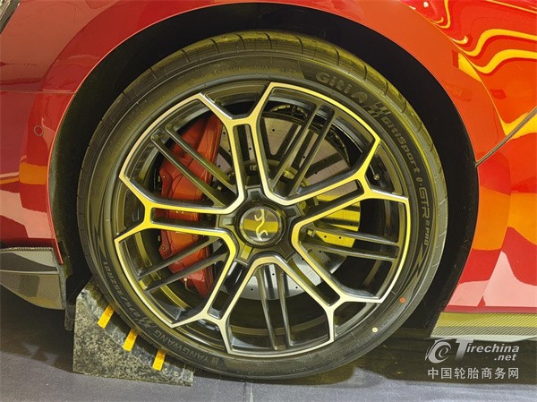 在佳通的展台上,配套仰望U9X的GitiSport e·GTR² ᴾᴿᴼ无疑是焦点。这款由佳通轮胎与仰望汽车联合定制开发的赛道级半热熔轮胎,是全球首款设计时速500km/h的电动车轮胎。